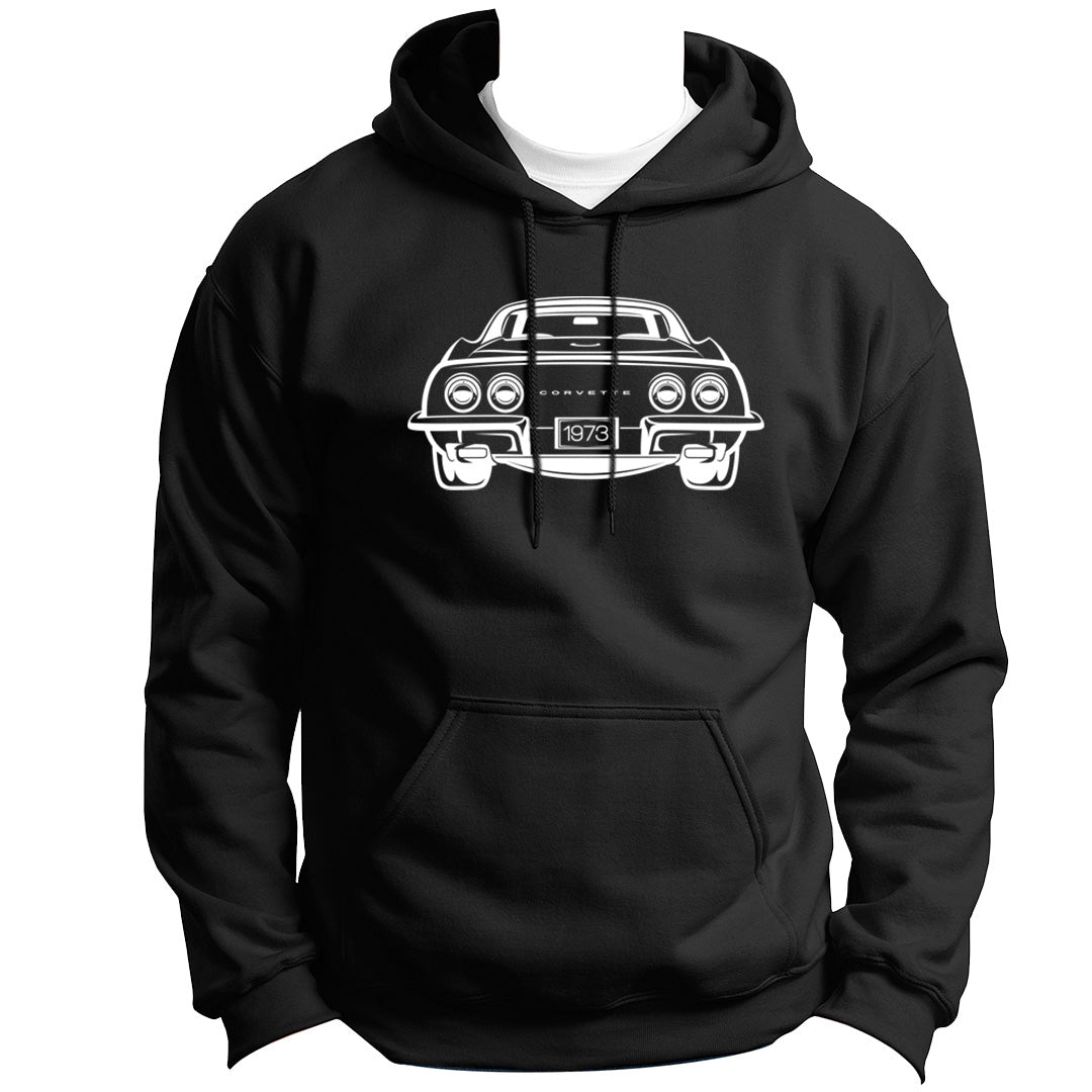 CAR BACK SERIES CHEVROLET CORVETTE 1973 HOODIE PULLOVER VINYL HEAT PRESS ORIGINAL ART